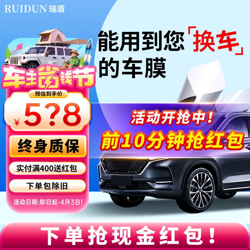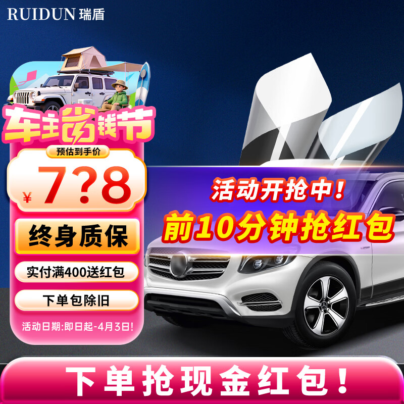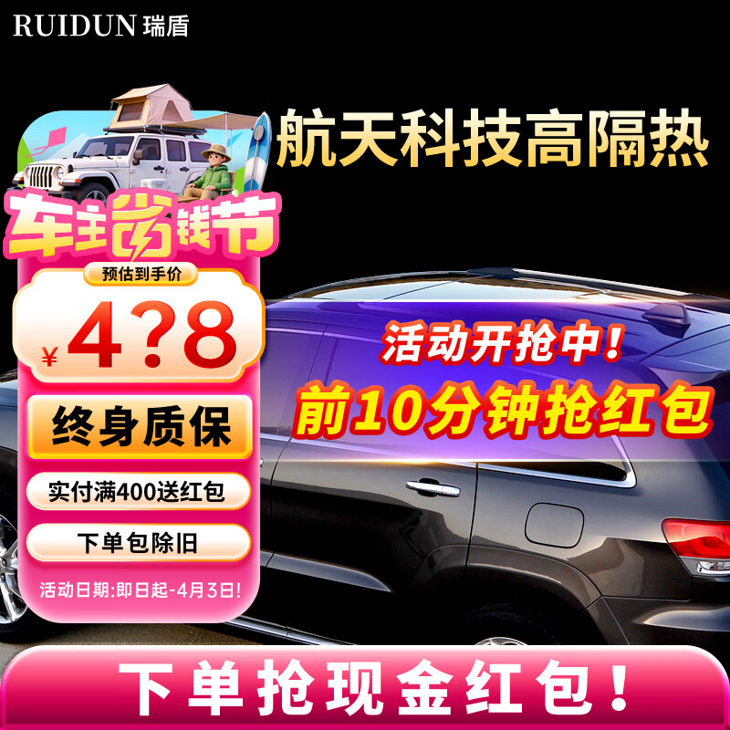 瑞盾(RUIDUN)汽车贴膜 车膜 汽车膜隔热防爆防晒太阳膜前挡风玻璃膜黑色隐私膜 RD90 RD50【大尺寸车型】 只有前挡