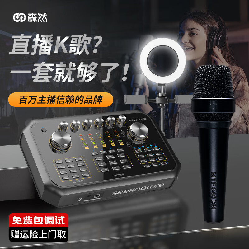 森然 Seeknature 播吧六代声卡套装手机直播电脑抖音快手通用主播唱歌全民k歌录音直播设备全套电容麦克风话筒