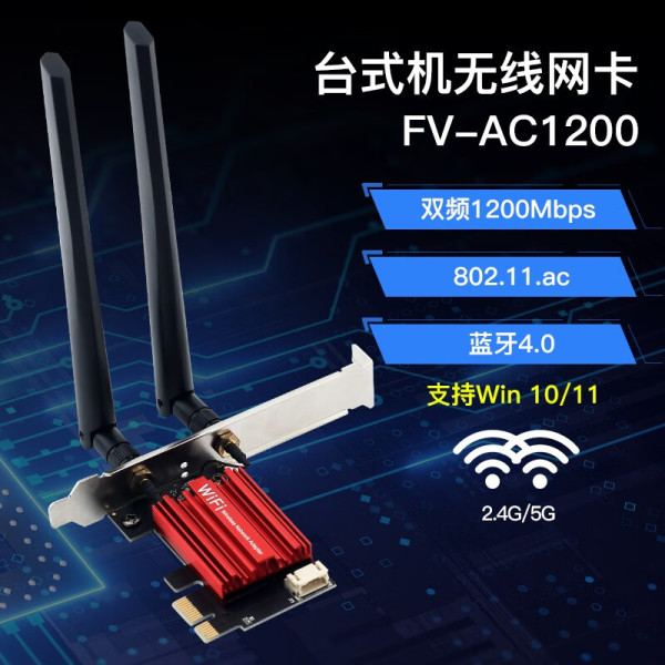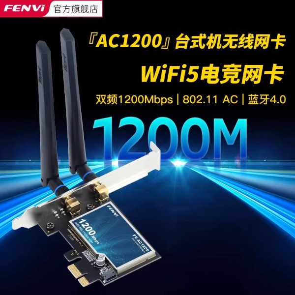 Fenvi 奋威 AX210无线网卡电竞WiFi6蓝牙5.2 AX200千兆5g三频PCIe台式机 AC1200-WIFI5 (加强款)