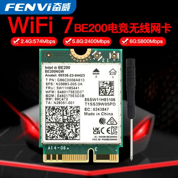 奋威(fenvi)WiFi7电竞游戏PCIE无线网卡BE200 千兆双频5G/6G台式机电脑内置WiFi接收器高速蓝牙5.4