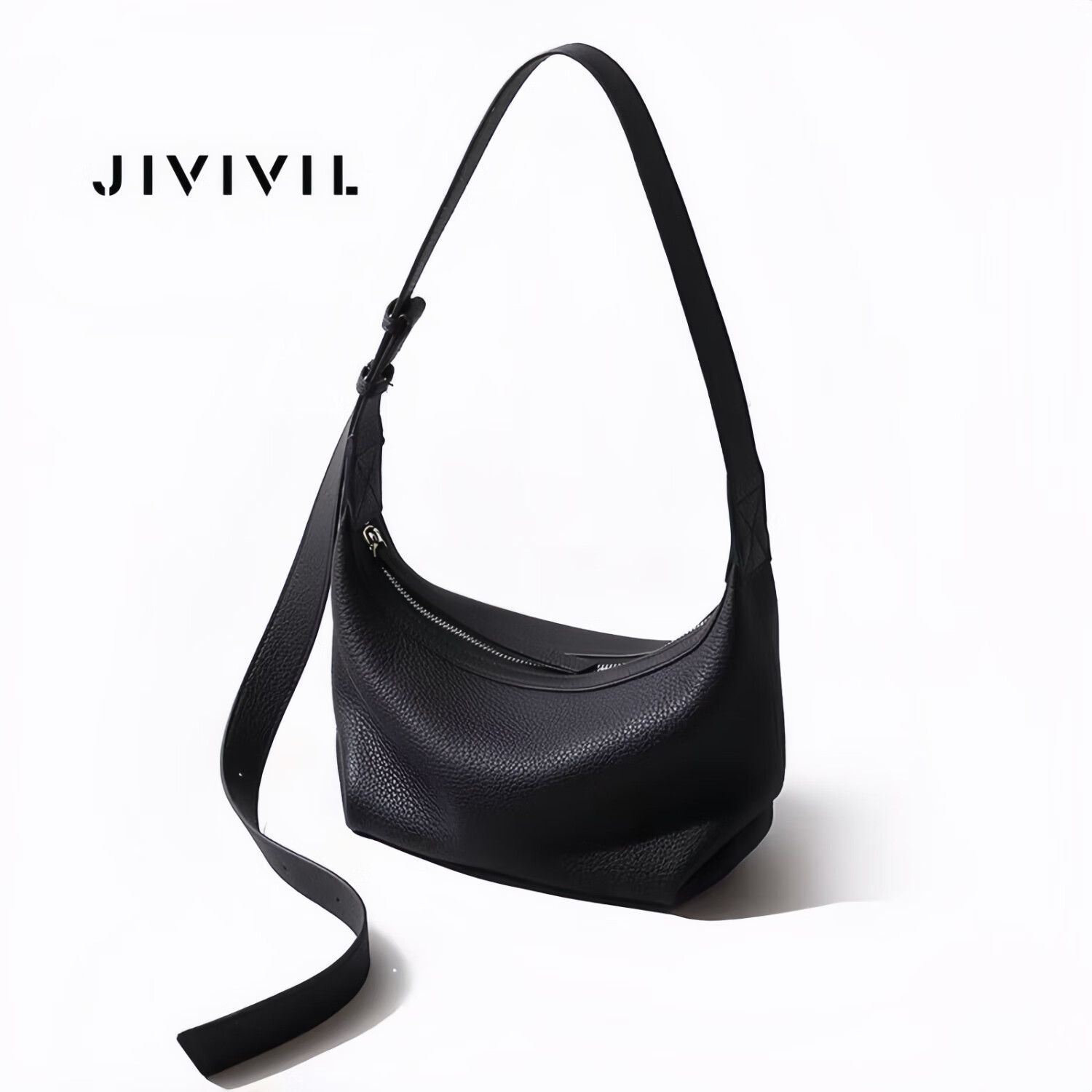 JIVIVIL法棍包饺子包女包简约小众设计通勤大容量时尚真皮手提斜挎单肩包 黑色