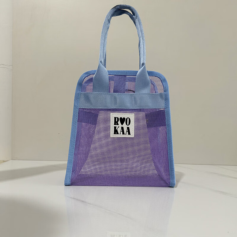 JIVIVIL网红沙滩游泳洗漱包轻奢透明果冻包简约单肩斜跨手提包网格包 紫蓝色