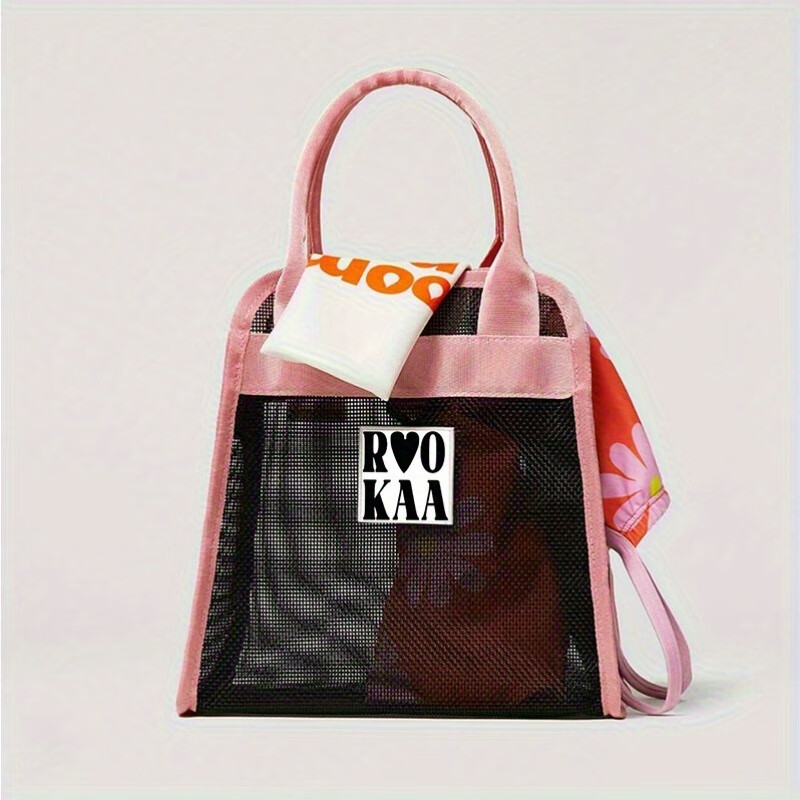JIVIVIL网红沙滩游泳洗漱包轻奢透明果冻包简约单肩斜跨手提包网格包 粉黑色