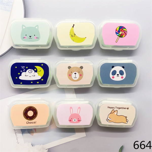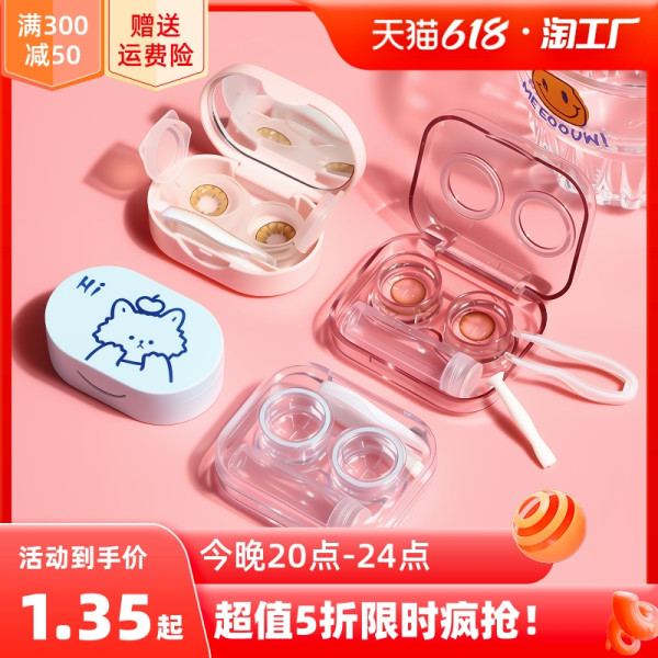 带镜子卡通便携隐形眼镜盒双联盒美瞳盒护理盒伴侣盒664