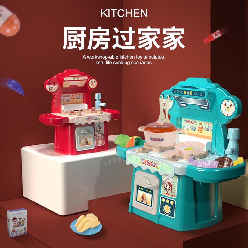 汇奇宝 儿童过家家厨房玩具套装宝宝小女孩煮饭锅男孩女童做饭仿真厨具全2-3-6-8岁 厨房套餐-豪华版30件套[珊瑚红]