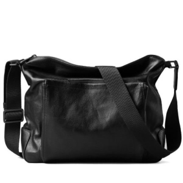 帕宾(pabin)单肩包男真皮横款头层牛皮男士包包时尚休闲男包潮流斜挎包PB2396黑色