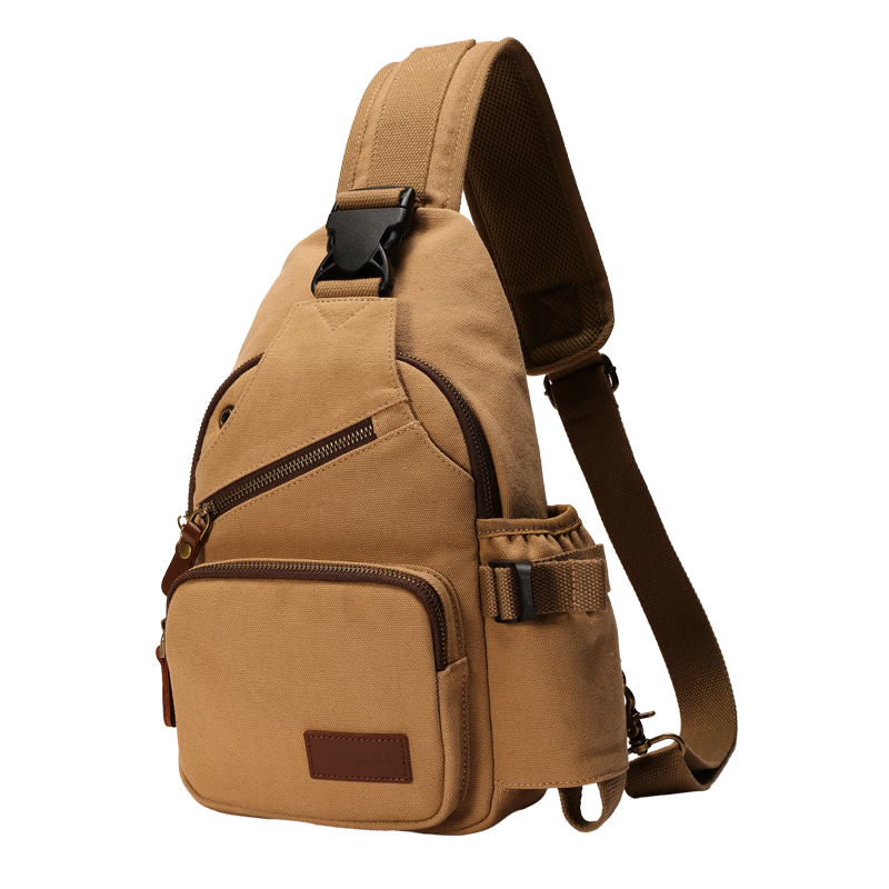 新潮代胸包男帆布新款大容量单肩包男士休闲斜挎包多功能腰包复古邮差包 加大号卡其色【可放A4纸张/12英寸平板】