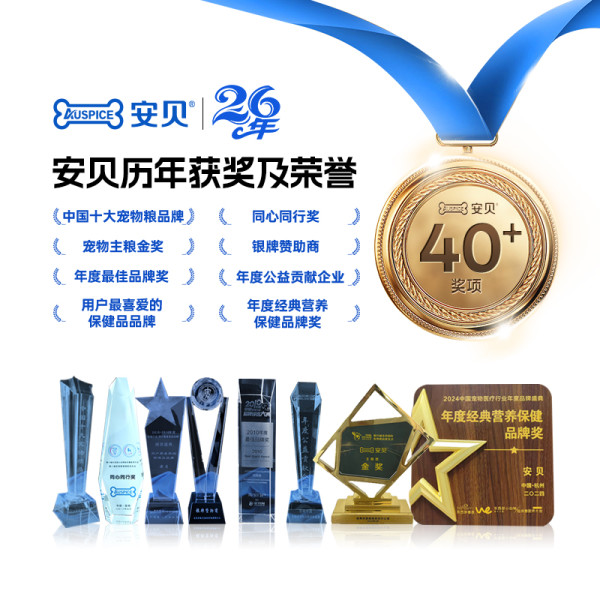 安贝,创立于1999年,是深耕宠物食品行业多年的国货老品牌,安贝集研发、生产、销售于一体,以中国农大丁丽敏博士团队为技术依托,酶解小肽为技术核心,始终秉承科学养宠理念,是国内宠物保健品领军企业和营养餐研发先行者,并为不同生命阶段的犬猫提是供了多样化的主粮选择。未来,安贝将在追求人宠幸福的道路上上不断前行。
