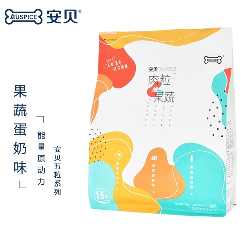 安贝(Auspice)狗粮宠物犬粮五粒牛肉鸡肉果蔬全价小型犬幼粮皮毛护理呵护肠道 果蔬蛋奶幼犬1.5公斤日期26.06