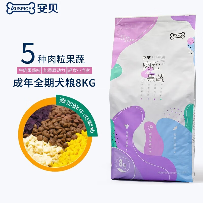 安贝(Auspice)狗粮宠物犬粮五粒牛肉鸡肉果蔬全价小型犬幼粮皮毛护理呵护肠道 五粒果蔬鸡肉8公斤日期至26.07