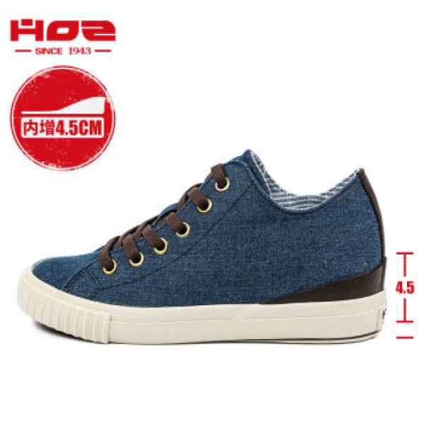 HOZ后街牛仔布帆布鞋女平底隐形板鞋透气休闲鞋 深蓝色 37