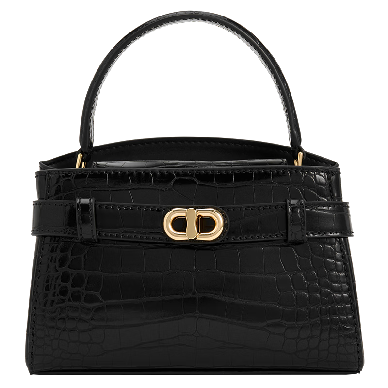 CHARLES&KEITH鳄鱼纹凯莉包手提斜挎婚包包女包生日礼物CK2-50270880-1 Black黑色 S