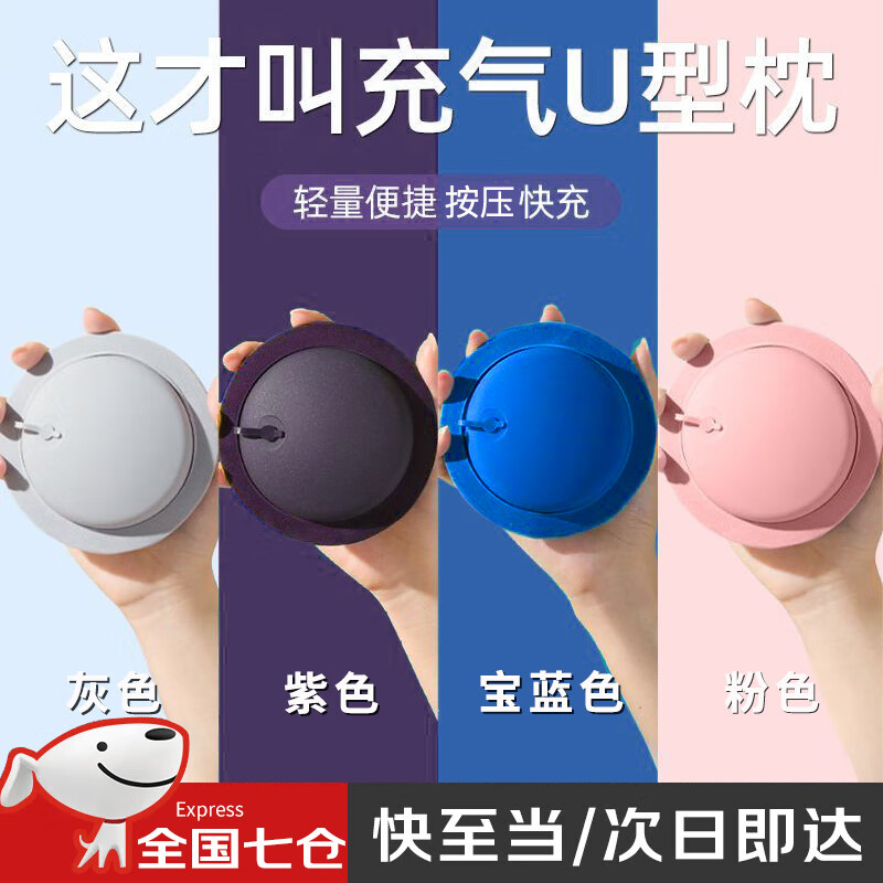 爱拉屋优充气u型枕飞机护颈枕旅行便携按压充气枕头高铁火车坐车睡觉神器 【紫色】便携式脖枕(两档可调) 旅行充气便携装备