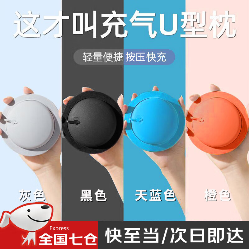 爱拉屋优充气u型枕飞机护颈枕旅行便携按压充气枕头高铁火车坐车睡觉神器 【橙色】便携式脖枕(两档可调) 旅行充气便携装备