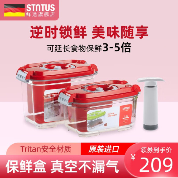 STNTUS innovations 鲜途保鲜盒冰箱专用水果食品真空保鲜盒进口圆形饭盒微波炉加热 真空保鲜盒0.75*2红色 手动泵