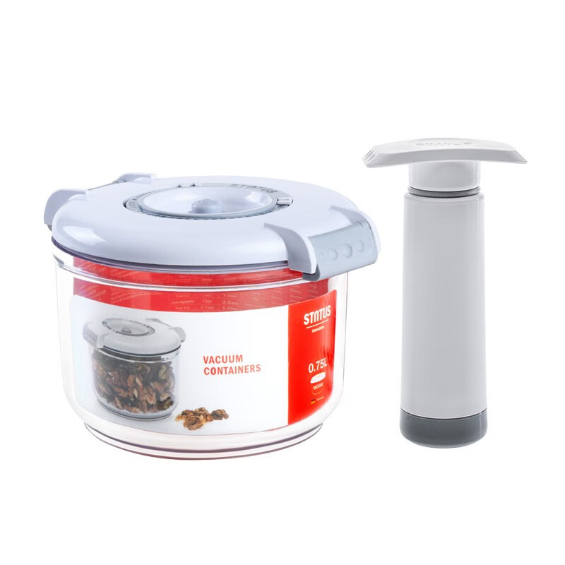 STNTUS innovations 鲜途保鲜盒冰箱专用水果食品真空保鲜盒进口圆形饭盒微波炉加热 0.75L白色 手动泵