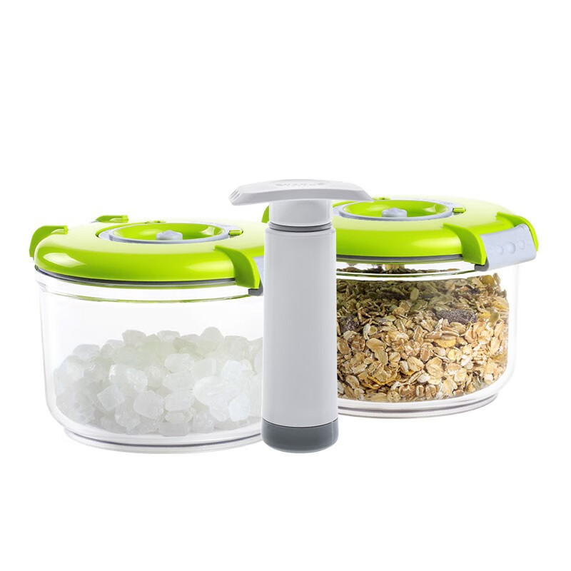 STNTUS innovations 鲜途保鲜盒冰箱专用水果食品真空保鲜盒进口圆形饭盒微波炉加热 真空保鲜盒0.75*2绿色 手动泵
