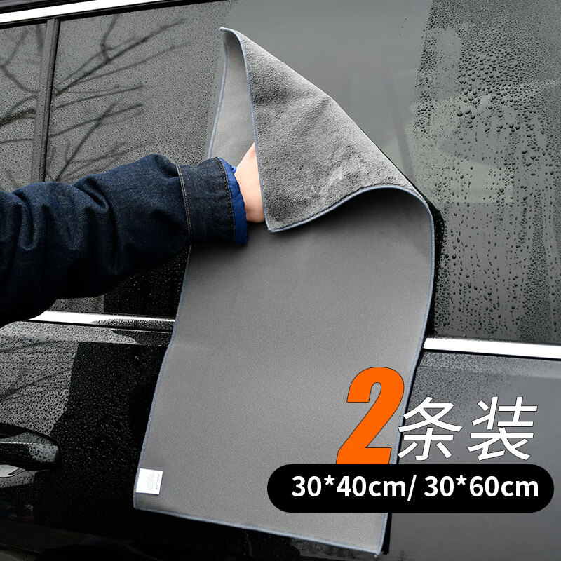 悦卡洗车毛巾擦车抹布 汽车清洁专用毛巾擦车巾 鹿皮珊瑚绒双面吸水麂皮绒毛巾30*40 30*60两条 灰
