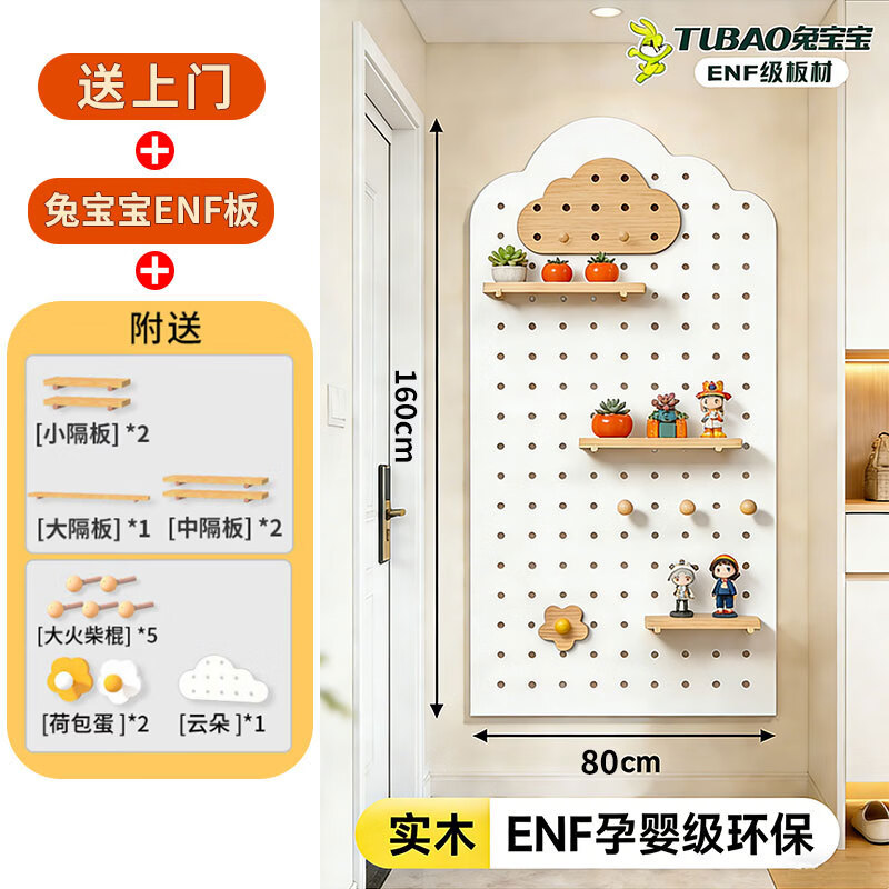 镱雅洞洞板定制置物架木质墙壁面板上挂衣架玄关入户门口高级感送配件 80乘60套餐 奶茶粉色云朵