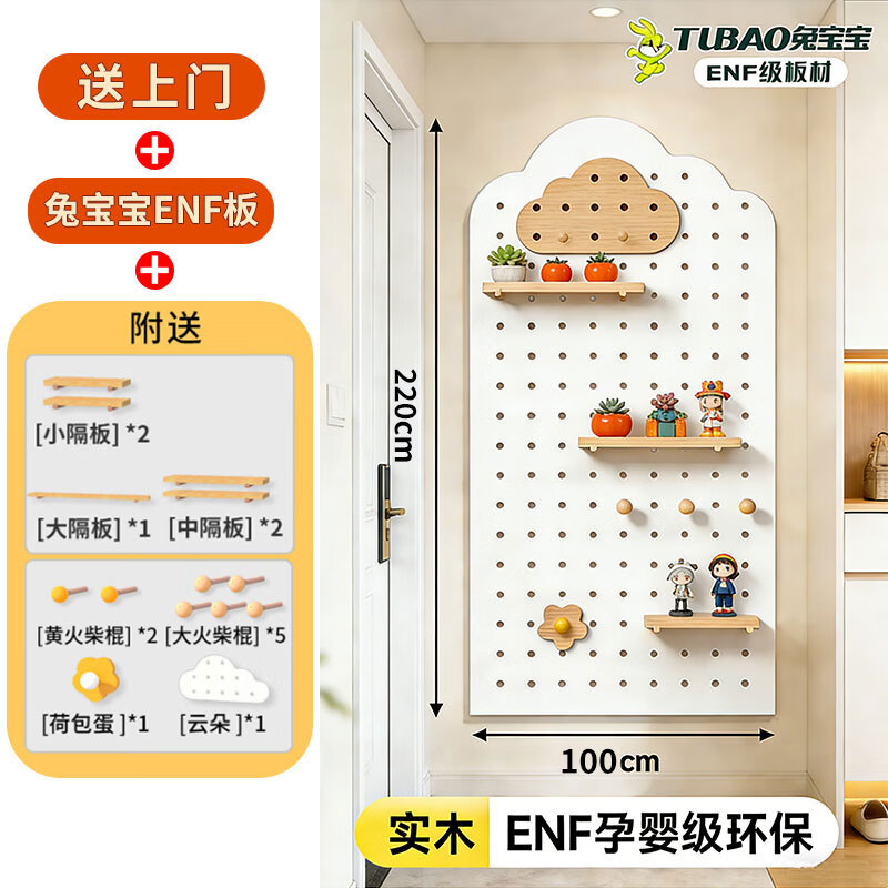 镱雅洞洞板定制置物架木质墙壁面板上挂衣架玄关入户门口高级感送配件 100*220套餐 奶咖色云朵