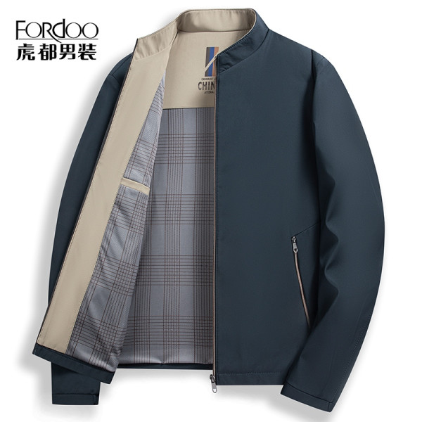 虎都男士简约立领行政夹克2024秋冬商务干部爸爸装休闲百搭外套