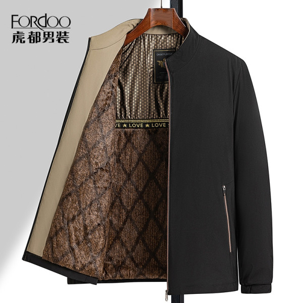 虎都男士加绒保暖夹克2024冬季中老年爸爸装棉服行政加厚外套