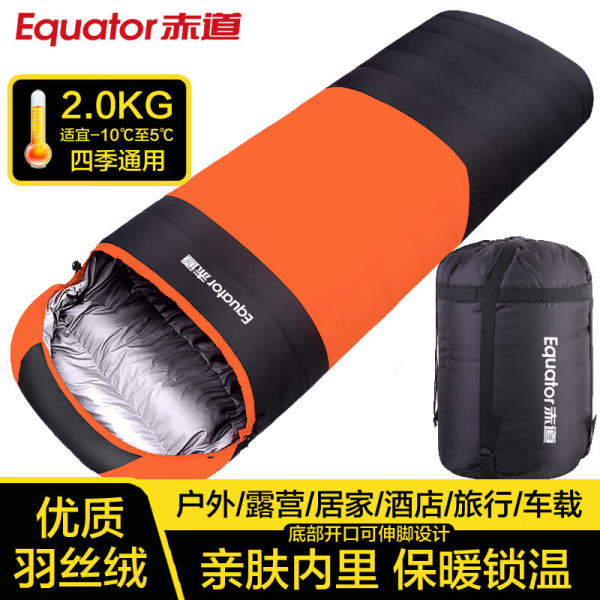 赤道户外睡袋成人冬季加厚保暖单人露营办公室午休便携信封羽绒睡袋