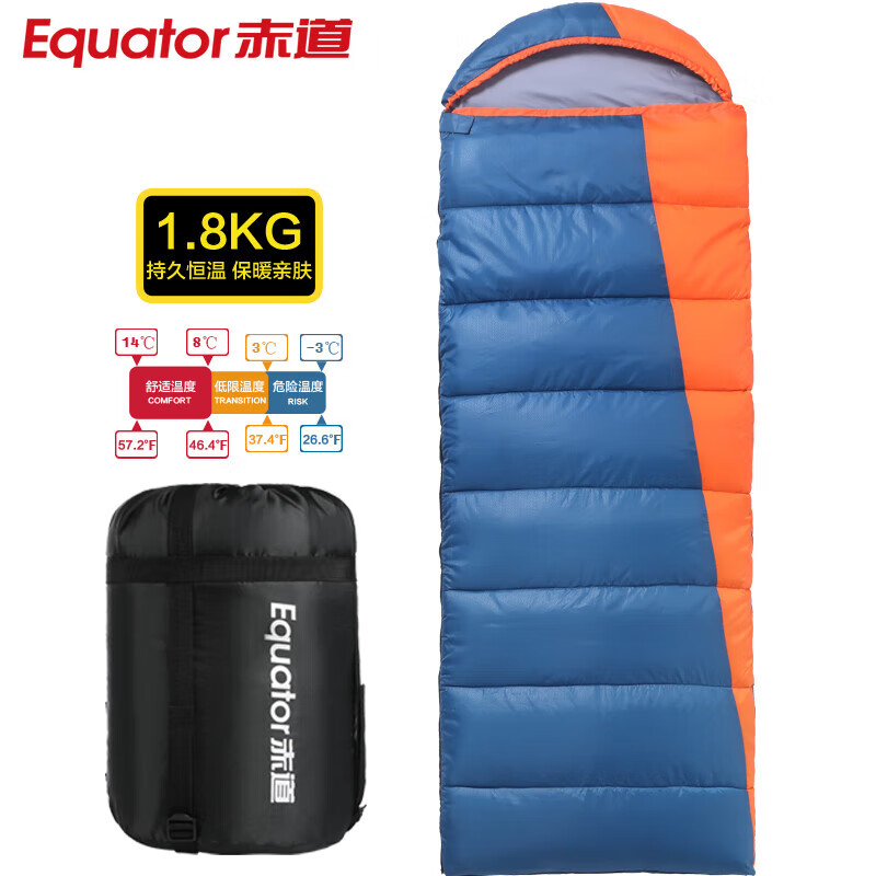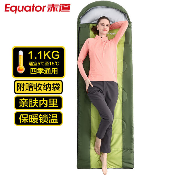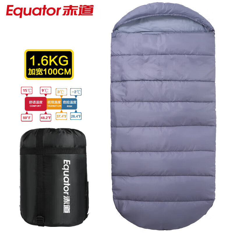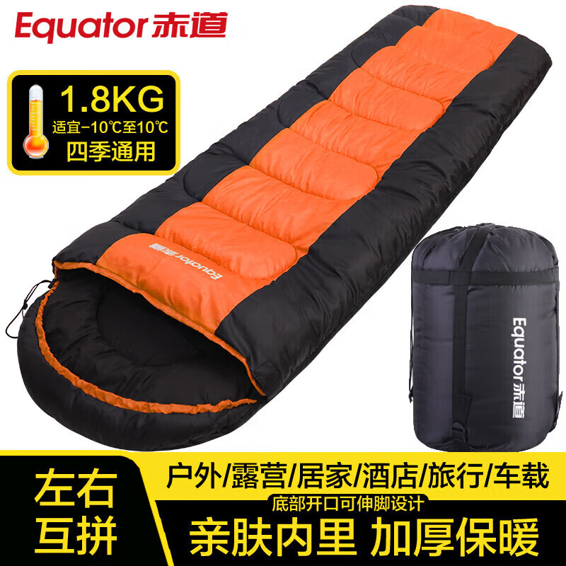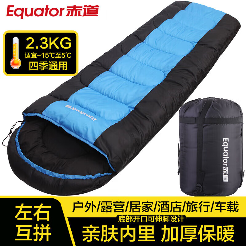 赤道 户外睡袋 成人春秋冬加厚保暖四季单人露营办公室午休便携信封睡袋 睡袋×1,收纳袋×1