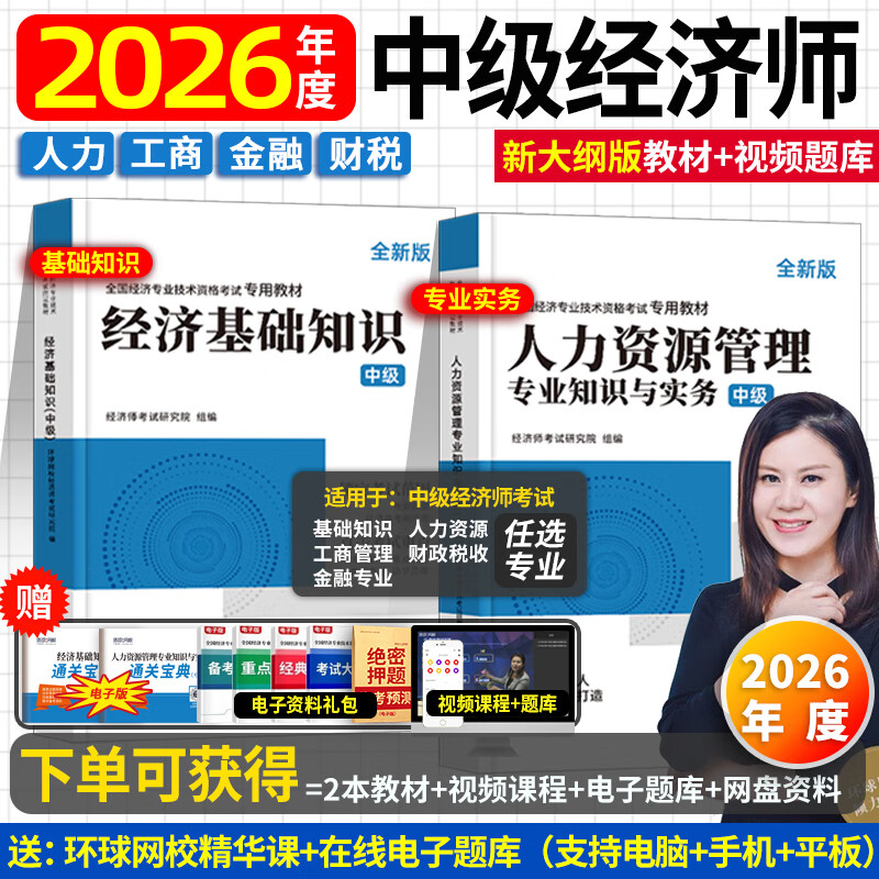 2026年度现货】正版中级经济师教材2026年环球网校中级经济师2026教材2025真题试卷章节必刷题刘艳霞零基础过经济师人力资源管理师经济基础知识工商管理金融财税 ①【自学成才】新版教材 视频教程