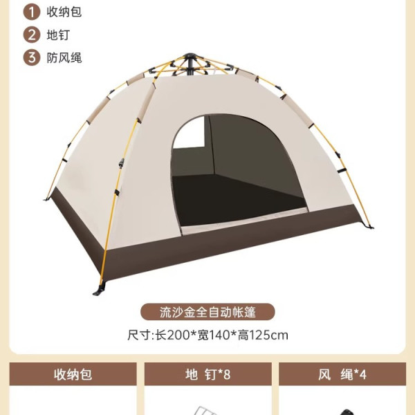 帐篷户外3-4人全自动野营露营野营野外加厚防雨速开折叠便携式
