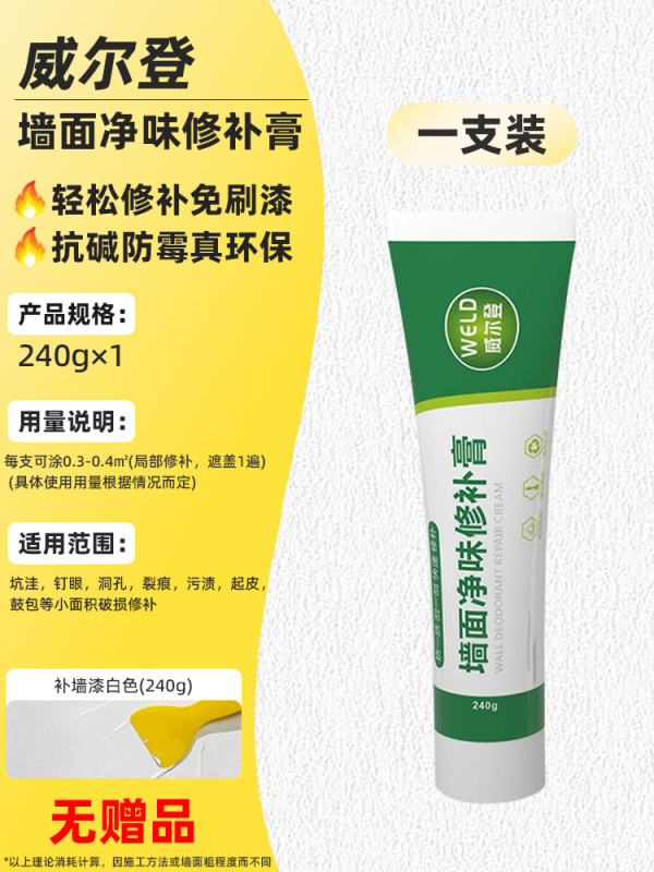 威尔登 WELD 补墙膏墙面修补白色净味防霉反碱修复膏