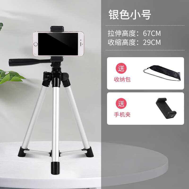 多宝莱 X9拍照主播手机三脚架床头直播支架三角架桌面户外懒人相机便携自拍火山小视频西瓜视频 银色67cm 手机夹 收纳包