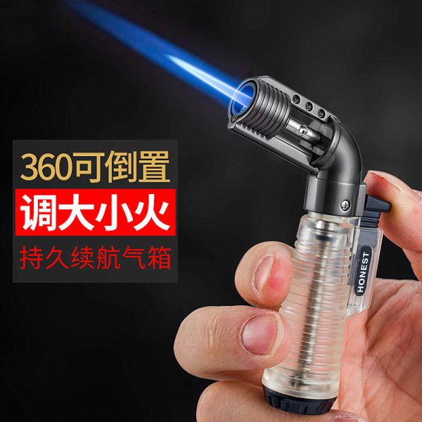 防风充气打火机喷枪弯斗蓝焰雪茄点火器透明仓艾灸焊枪直冲烘焙
