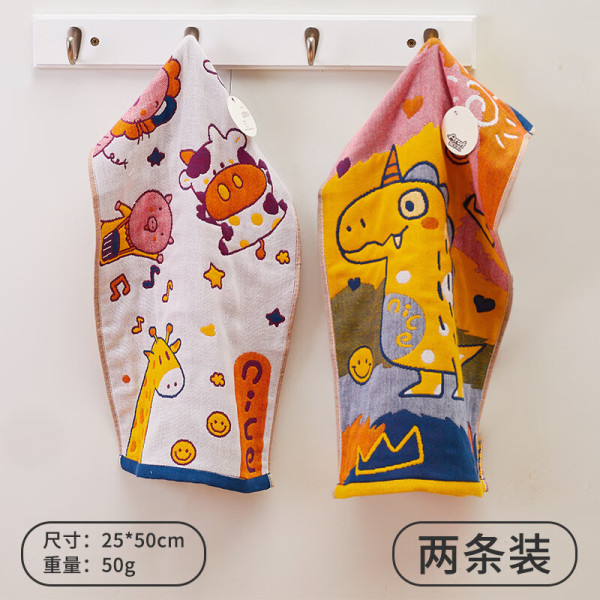 爱尔思儿童纱布毛巾纯棉洗脸柔软吸水不掉毛加厚男女擦汗口水专用毛巾 2条装-动物城+卡漫龙