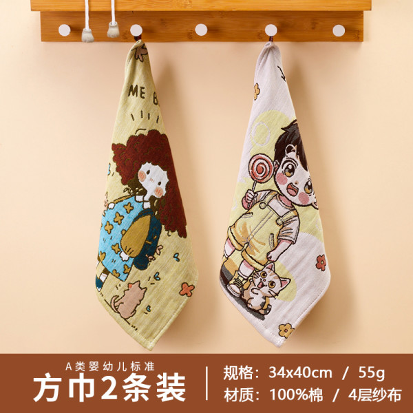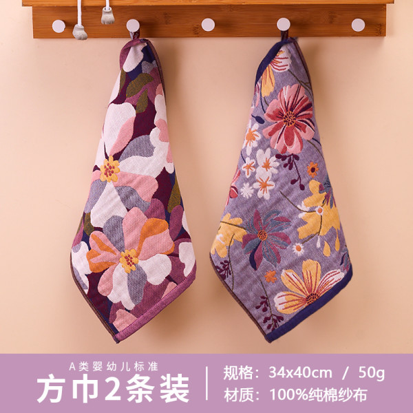 爱尔思 Arsof AH-1334 纯棉纱布方巾 2条装-梦花+杨菊子 柔软吸水 可挂式