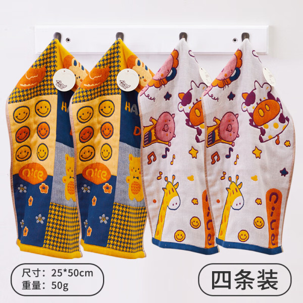 爱尔思儿童纱布毛巾纯棉洗脸柔软吸水不掉毛加厚男女擦汗口水专用毛巾 4条装-欢乐园+动物城