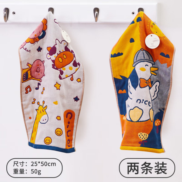 爱尔思儿童纱布毛巾纯棉洗脸柔软吸水不掉毛加厚男女擦汗口水专用毛巾 2条装-动物城+跳跳鸭
