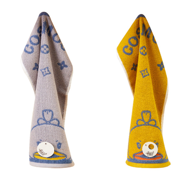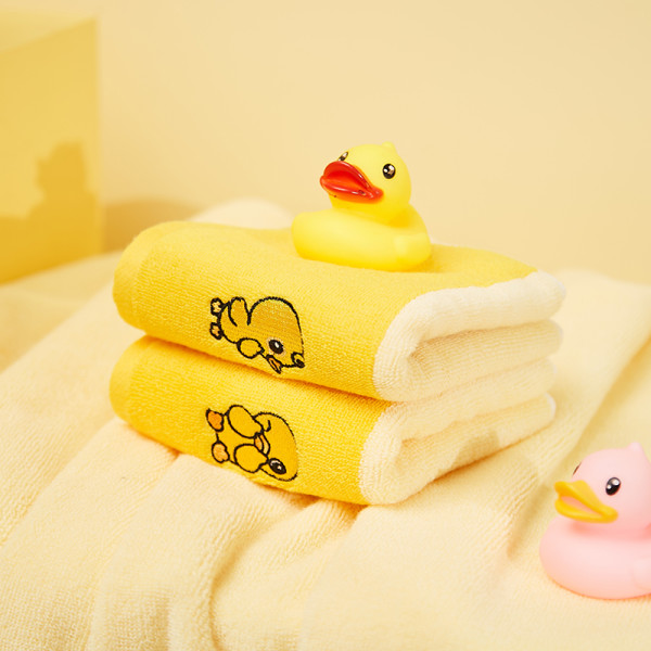 爱尔思 小黄鸭儿童毛巾纯棉洗脸家用小方巾吸水可挂式幼儿园专用冬 2条装-糖糖【黄】
