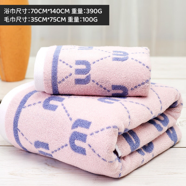 爱尔思 Arsof 新疆棉浴巾 男士100%纯棉 加厚吸水 M网格浴巾+毛巾套装 粉色