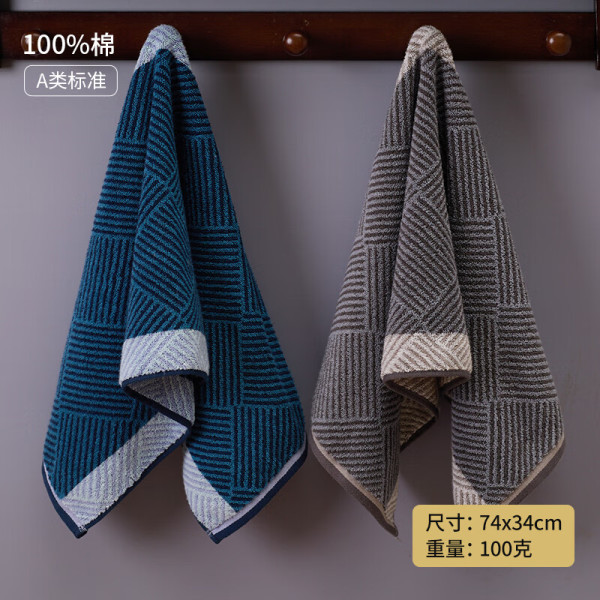 爱尔思 Arsof 纯棉男士洗脸毛巾家用成人全棉吸水不掉毛面巾男女大人柔软洗澡巾 2条装