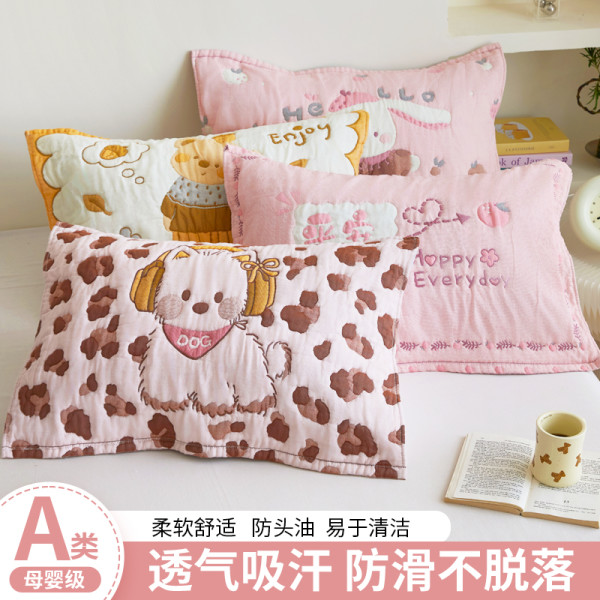 爱尔思 高档加厚纱布泡芙枕巾吸汗透气不脱落a类枕头巾加大盖巾新款夏
