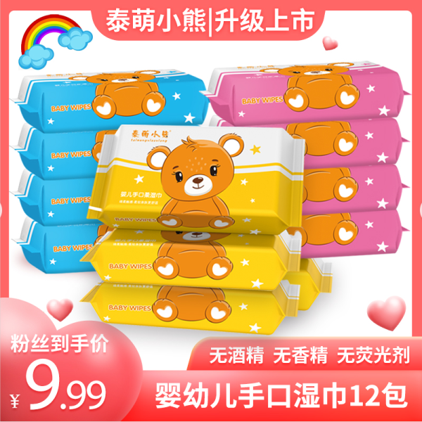 特卖好物【12包湿巾】泰萌小熊 40抽/包婴幼儿手口湿巾主链