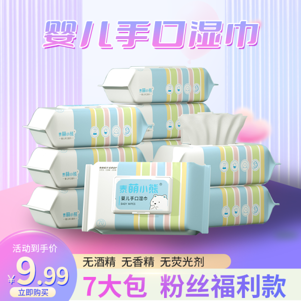 正常发货【买6送6】泰萌小熊6大包送6包便携婴幼儿家用湿巾母婴主链