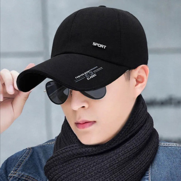 鑫铎棒球帽子男士潮流嘻哈夏季长檐简约鸭舌帽女休闲四季防晒遮阳帽男 SPORT铁标黑 55-60CM