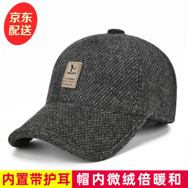 鑫铎中老年帽子男秋冬爸爸老人保暖棒球帽老头爷爷冬季护耳鸭舌帽冬天 黑灰色 可调头围【56-60cm】
