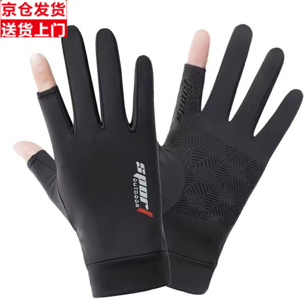 鑫铎 保暖手套男冬季加绒加厚麂皮绒触屏防滑送外卖钓鱼防晒薄款手套女 运动薄款黑色 均码