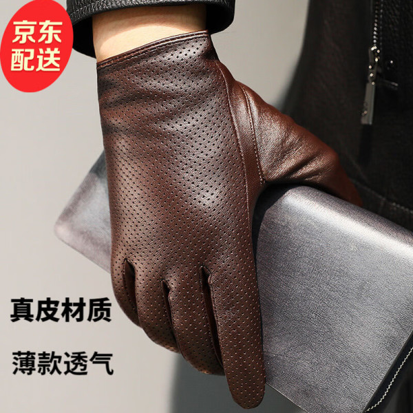 鑫铎 真皮手套男薄款秋冬季保暖骑行开车骑行手套女时尚防风羊皮手套 男士棕色M适合男士偏小手掌