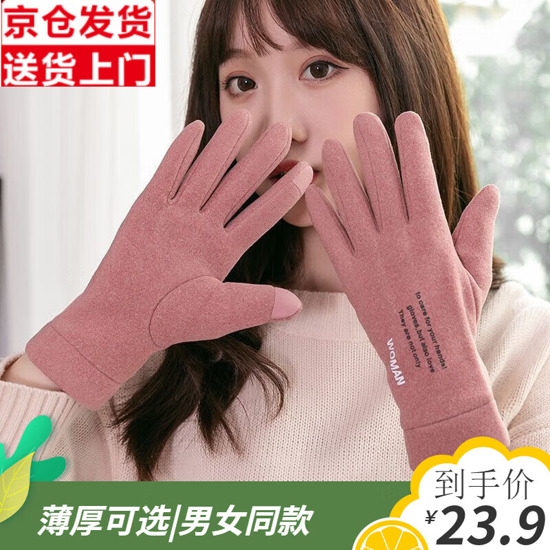 鑫铎手套男薄款春秋保暖骑行开车防寒钓鱼开车触屏秋冬季弹力外卖手套 薄款粉色 均码