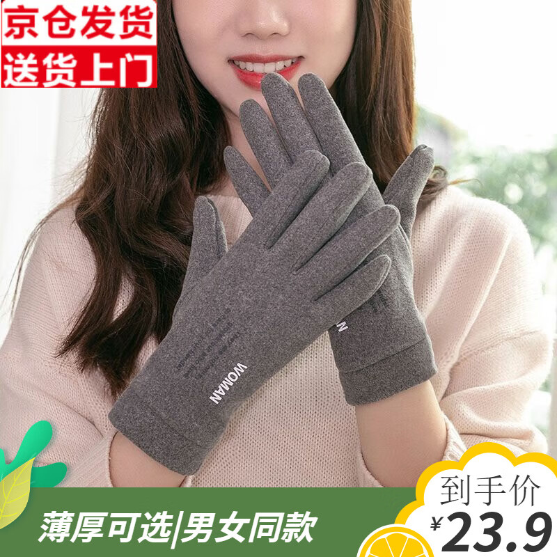 鑫铎手套男薄款春秋保暖骑行开车防寒钓鱼开车触屏秋冬季弹力外卖手套 女灰色【单层】 均码