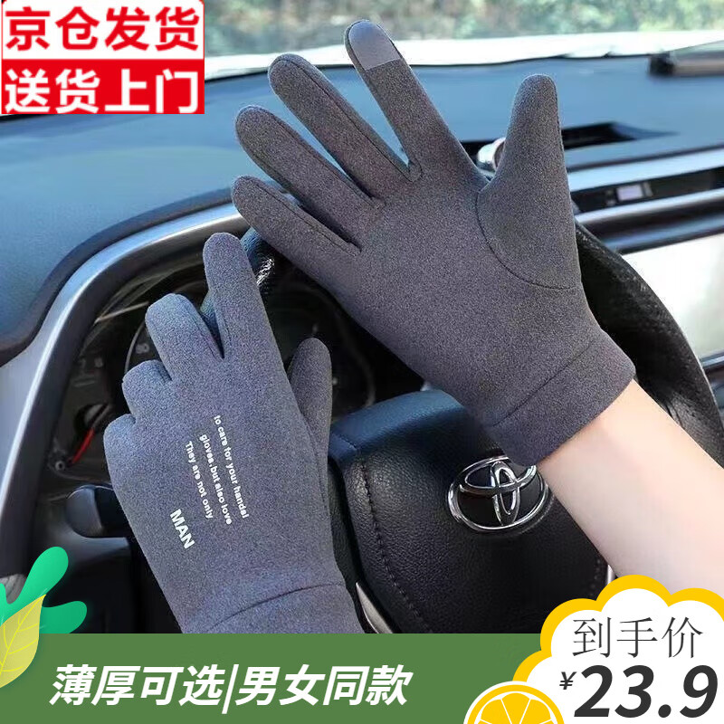 鑫铎手套男薄款春秋保暖骑行开车防寒钓鱼开车触屏秋冬季弹力外卖手套 加绒灰色(男款) 均码